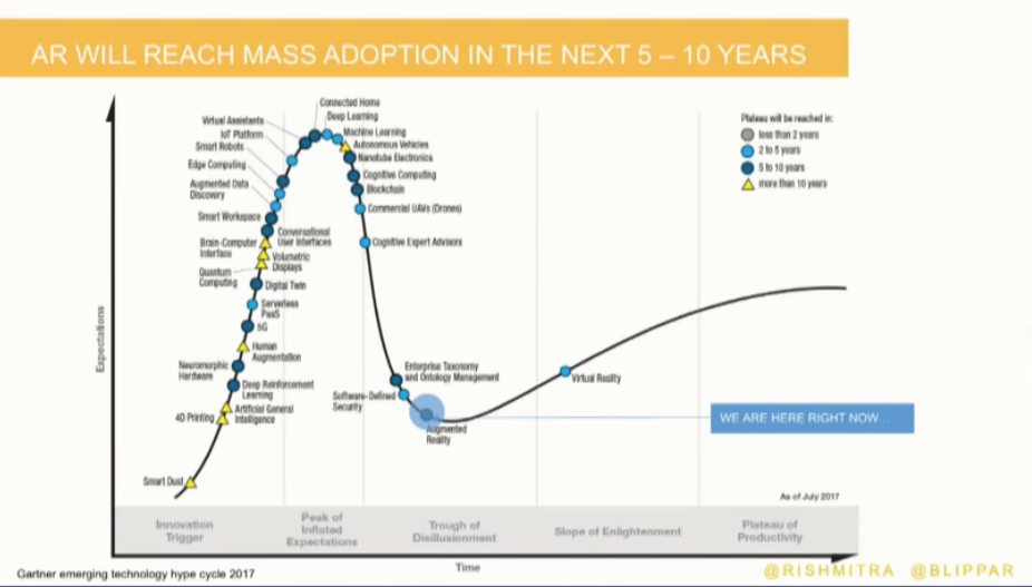 This is the famous Gartner hype cycle which it has been applied to augmented reality as well. We started Blippar literally when it was in the very very earth early stages innovation trigger. We’ve actually been through the whole peak of inflicted expectations. We’ve raised a bunch of money and now it’s reaching a point where AR is under the scrutiny of whether it is going to deliver on its true potential.